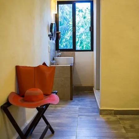 De kamers van het pand in Bacalar hebben een patio, samen met een broekpers en airconditioning voor uw gemak. Voor uw comfort vindt u een apart toilet en een douche in de badkamers.